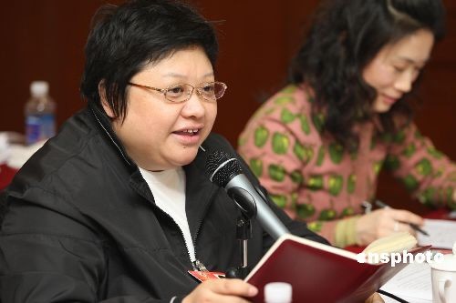 3月4日,全國(guó)政協(xié)十一屆二次會(huì)議進(jìn)行分組討論。韓紅在青聯(lián)界小組討論上發(fā)言。中新社發(fā) 傅丹丹 攝