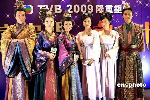 三月二十三日,《宮心計(jì)》在香港會展中心舉行開幕儀式。圖為演員佘詩曼、米雪、關(guān)菊英等在儀式上合影。中新社發(fā) 張勤 攝
