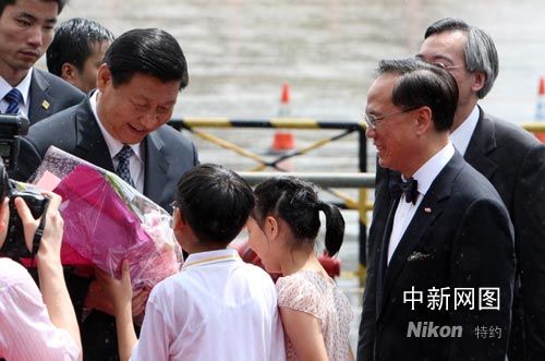 國家副主席習(xí)近平7月6日上午經(jīng)落馬洲進(jìn)入香港,實(shí)地了解2008年奧運(yùn)及殘奧馬術(shù)比賽的籌備情況和視察香港的近況。中新社記者 任海霞 攝