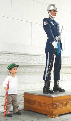 以后如果在“中山紀(jì)念館”、忠烈祠或慈湖看到衛(wèi)兵旁邊站著一個小朋友,有模有樣地耍槍,那可能就是小小禮兵Ryan。