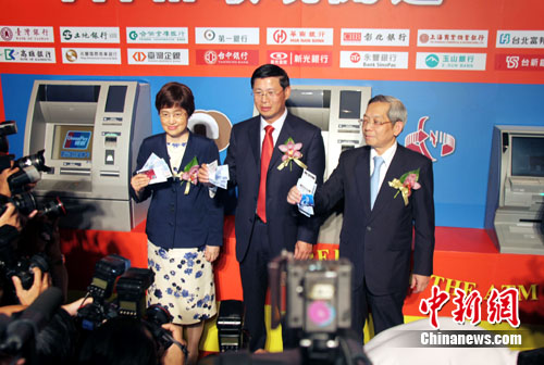 中新網(wǎng)臺(tái)北6月30日電(記者 黃少華)6月30日,中國(guó)銀聯(lián)、臺(tái)灣財(cái)金公司、臺(tái)灣銀行公會(huì)舉行記者會(huì),宣布銀聯(lián)卡在臺(tái)ATM提領(lǐng)新臺(tái)幣、預(yù)借現(xiàn)金及余額查詢服務(wù)正式開通。