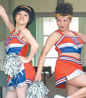 林韋君看著鏡中的自己,忍不住用“檳榔西施”口吻問大家說:“偶這樣漂亮嗎?”無獨(dú)有偶,阿寶曾寶儀在戲劇《倪亞達(dá)》中也犧牲形象和僅雯穿拉拉隊(duì)服,為“立委”選舉拉票。