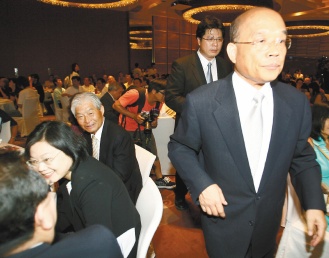 據(jù)報(bào)道,民進(jìn)黨北二都市長(zhǎng)參選人蘇貞昌和蔡英文昨晚共同出席一場(chǎng)募款餐會(huì),兩人同坐主桌,但互動(dòng)不多。蔡英文先上臺(tái)致詞,主持人介紹蘇貞昌進(jìn)場(chǎng)時(shí),蔡英文也跟著舉手高喊“沖沖沖”。蘇貞昌上周也現(xiàn)身臺(tái)北縣,為蔡英文拉票。