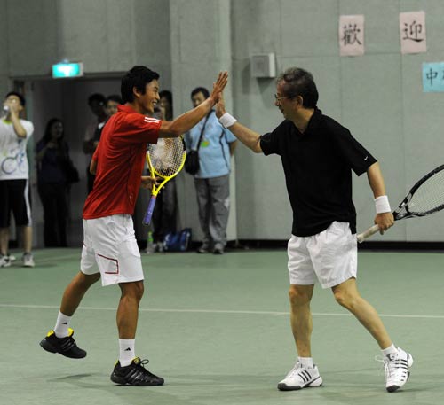 中新網(wǎng)7月6日電 據(jù)“中央社”報道,5日晚臺灣“中央研究院”網(wǎng)球場星光燦爛。剛打進溫布爾登男單8強的盧彥勛與前“中研院長”李遠哲搭配,迎戰(zhàn)以艾滋病雞尾酒療法聞名的何大一與廣州亞運網(wǎng)球總教練連玉輝。
