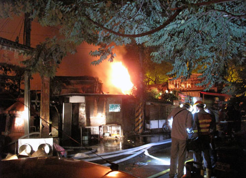 距火災(zāi)現(xiàn)場(chǎng)僅1街之隔,就有1座加油站,消防隊(duì)員緊急拉起封鎖線,全力圍堵火勢(shì)蔓延。受火損的磚頭和木造建筑為老式房屋,里面的住戶廚房多數(shù)使用桶裝瓦斯,外泄的瓦斯助長(zhǎng)火勢(shì),一發(fā)不可收拾。