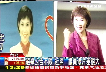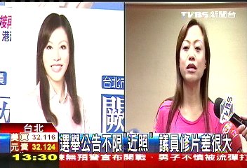 據(jù)臺(tái)灣TVBS報(bào)道,年底“直轄市”議員選舉,滿街都能看到參選人選舉廣告牌照片,不過(guò)有些照片比本人年輕十幾歲,如果放在選舉公報(bào)里,民眾質(zhì)疑會(huì)不會(huì)有誤導(dǎo)之嫌?