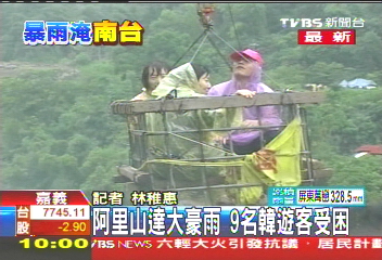根據(jù)了解,在此行中,總共有9名的韓國游客,遠(yuǎn)從首爾來到臺(tái)參加教會(huì)活動(dòng),但卻因?yàn)榇笥,所有的?lián)外道路都被沖斷,因此受困在山中。