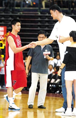 姚明特別介紹NBA球員林書豪,也讓林書豪成為第一位被介紹出場(chǎng)的球員,可見(jiàn)姚明對(duì)林書豪的看重。