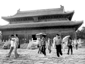 昨日下午,這些臺(tái)灣的旅游巨頭們饒有興趣地參觀了清西陵景區(qū)中葬有雍正皇帝的泰陵。在泰陵隆恩殿,大家一邊聽導(dǎo)游員的精彩講解,一邊不時(shí)跑到龍袍前合影留念。