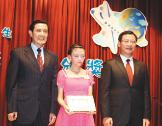 該獎(jiǎng)項(xiàng)今年頒發(fā)新臺(tái)幣200萬(wàn)元獎(jiǎng)學(xué)金,共150位學(xué)生獲獎(jiǎng),由縣長(zhǎng)吳志揚(yáng)主持,馬英九頒獎(jiǎng)合照。