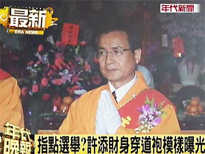 中新網(wǎng)8月6日電 據(jù)臺灣“今日新聞網(wǎng)”報道,民進黨高雄縣長楊秋興宣布參選大高雄市長之后,同黨籍臺南市長許添財?shù)南乱徊揭趺醋鰝涫芡饨珀P(guān)注,有媒體取得許添財前往濟公廟參拜的照片,直擊許添財身穿濟公道袍參加法會的虔誠模樣。外傳廟中的濟公師父還曾經(jīng)給許添財指點迷津,建議他8月8日當(dāng)天宣布參選大臺南。