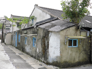 一位旁邊的住戶(hù)告訴記者,眼前的四四南村,就是由兵工廠的員工及眷戶(hù)們居住的區(qū)域,原地曾是日軍陸軍庫(kù)房。整體建筑為“魚(yú)骨狀”架構(gòu),依然保持著當(dāng)年的樣貌,窄窄的過(guò)道,低矮的屋頂,灰黑色的磚墻,狹小的居住面積。據(jù)統(tǒng)計(jì),四四南村原計(jì)劃在1999年隨眷村改建政策拆除,但在1991年3月,被臺(tái)北市政府列為“歷史建筑物”,并在1993年10月,改為信義區(qū)公民會(huì)館,將眷村內(nèi)的生活用博物館的方式展出,并提供市民租借為展覽活動(dòng)場(chǎng)地。原建物并未變動(dòng),連圍墻也都還保留著。