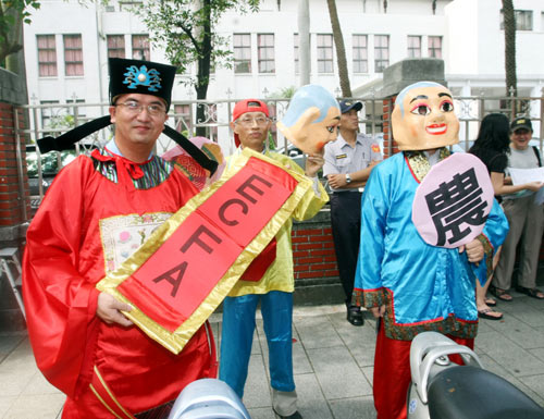 18日上午,兩岸和平發(fā)展論壇數(shù)百名支持民眾在臺灣立法機(jī)構(gòu)外集會,以“通過ECFA,打開臺灣經(jīng)濟(jì)活路;共享和平紅利,擴(kuò)大社會福利”為訴求進(jìn)行請愿活動。