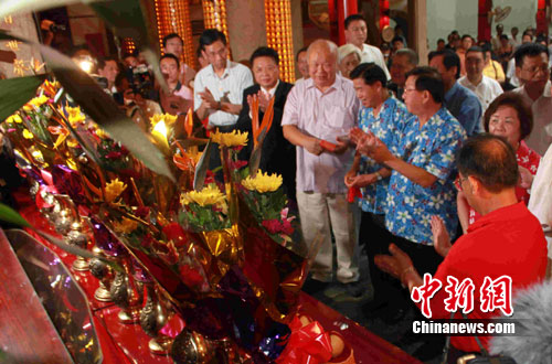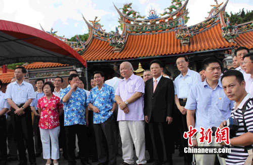 中新網新竹8月18日電(記者 張傳熙)率領廣東省經貿文化交流團訪臺的黃華華省長今天下午從臺北抵達新竹縣展開尋親、訪友的“鄉(xiāng)情之旅”。下午,在新竹縣領導人邱鏡淳及眾多鄉(xiāng)親的陪同下,黃華華到當地代表客家文化的義民廟行禮、祭拜。