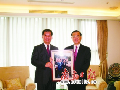 再說臺商,目前大陸一共核準了38萬項臺商的投資,其中12萬項在廣東,幾乎是三分之一。(笑)我認為海峽兩岸特別是粵臺兩地發(fā)展的勢頭很好,尤其值得高興的是,昨天晚上ECFA已經(jīng)通過了。