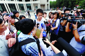 在北大33號宿舍樓下,兩名迎新的同學開起了玩笑,“應該站在身后為他撐傘,這樣可能就有出名的機會了!彼麄儧]有提到這個玩笑中主角的名字,只稱他是“李敖的兒子”。他叫李戡,北京大學經濟學院大一新生。