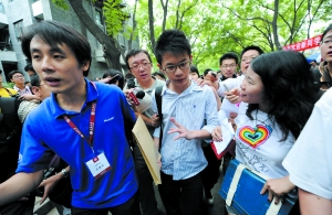昨日北大五四路上迎來(lái)了一群新鮮的面孔,而李戡絕對(duì)是其中的“超級(jí)明星”。早上8點(diǎn),兩岸三地的記者就在經(jīng)濟(jì)學(xué)院報(bào)名處“蹲點(diǎn)”。10點(diǎn)左右,身材清瘦、穿著白底黑條紋襯衫的李戡終于現(xiàn)身,面對(duì)媒體的圍追堵截,他應(yīng)對(duì)大方得體,承認(rèn)上北大是受父親的影響。前來(lái)送行的母親則希望媒體的關(guān)注只限于近幾日,開(kāi)學(xué)后能讓孩子平靜安心地學(xué)習(xí)。