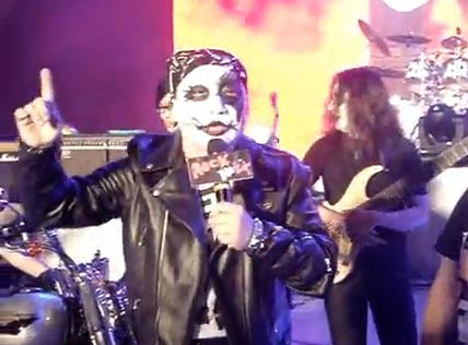 中新網(wǎng)9月3日電 據(jù)臺(tái)灣聯(lián)合報(bào)報(bào)道,第3屆搖滾臺(tái)中樂(lè)團(tuán)節(jié)4、5日將登場(chǎng),臺(tái)中市長(zhǎng)胡志強(qiáng)2日晚臉化尸妝、腳跨哈雷重型摩托車(chē)現(xiàn)身記者會(huì),一張臉讓現(xiàn)場(chǎng)媒體嚇得倒彈,以為“看到鬼!”