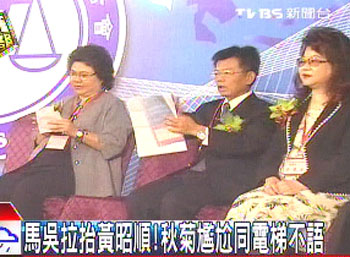 中新網(wǎng)9月5日電 據(jù)臺(tái)灣TVBS電視臺(tái)報(bào)道,大高雄市長(zhǎng)選舉,綠營(yíng)陳菊、楊秋興爆發(fā)內(nèi)訌,2人連坐同一部電梯,也絲毫沒有互動(dòng),相敬如冰。