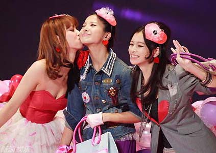 徐若瑄日前在微博上炮轟經(jīng)紀公司冷落她,引發(fā)各界關(guān)注,但是這件事并沒有影響她在臺上的演出,秀出翹臀、眨眼裝可愛。粉紅色短褲搭配黑色高跟鞋,讓她的腿顯得特別修長,既性感又可愛的扮相獲得滿堂彩。