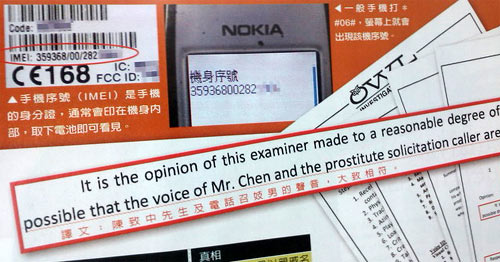 中新網(wǎng)9月8日電 陳水扁之子陳致中到底有沒有召妓?8日出刊的《壹周刊》提出“鐵證”繼續(xù)追打,稱美國權(quán)威機構(gòu)聲紋比對結(jié)果顯示,“召妓男”的電話錄音和陳致中“聲紋相符”;更勁爆的是,該刊還在訴訟資料中發(fā)現(xiàn),陳致中和“召妓男”都使用同一支手機。對此,陳致中則強調(diào)若有證據(jù)應(yīng)提到法院上作攻防,而不是在媒體上放話。