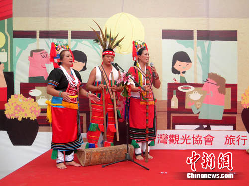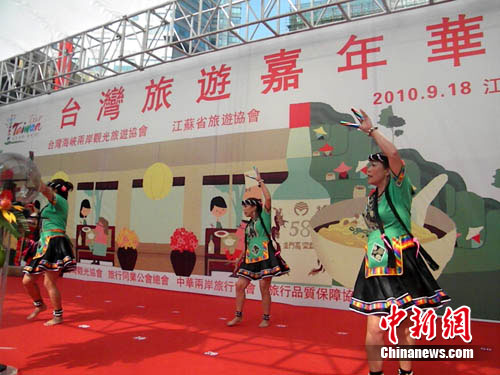 中新網(wǎng)南京9月18日電 (記者 王國(guó)安)臺(tái)灣少數(shù)民族的激情歌舞,拉開(kāi)了臺(tái)灣海峽兩岸觀光旅游協(xié)會(huì)18日在南京舉行的戶外嘉年華活動(dòng)序幕,以此方式向江蘇民眾“面對(duì)面”推介臺(tái)灣游。