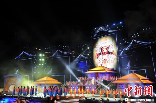 中新網(wǎng)臺灣彰化10月3日電 閩臺兩地聯(lián)合主辦的《媽祖之光•福航彰化》大型電視晚會,2日晚在臺灣彰化縣體育場盛大開場。