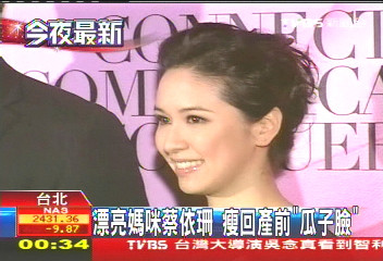 中新網(wǎng)10月15日電 據(jù)臺灣TVBS報道,14日晚間,臺灣一項乳癌防治公益活動吸引不少漂亮媽咪站臺,正在準備演唱會的歌手張清芳,以及為連家生下第二個寶寶的蔡依珊,都是亮麗現(xiàn)身。蔡依珊一出現(xiàn),鎂光燈閃個不亮,因為才2星期時間,很明顯的又瘦了一圈。