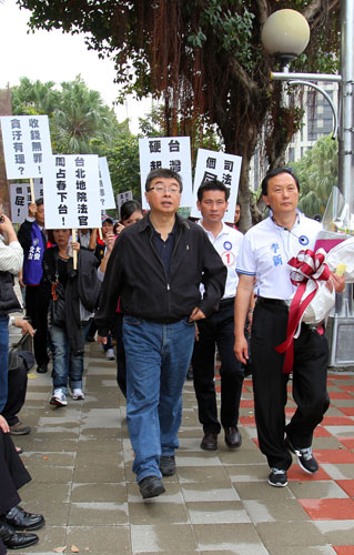 昨天不少藍(lán)營(yíng)民意代表率民眾前往“司法院”抗議,強(qiáng)烈要求周占春這種“恐龍法官”應(yīng)該下臺(tái),還有人焚燒陳水扁的畫像。