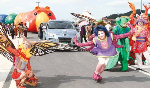 “吉祥慶花博”由五只花博娃娃會在四大展區(qū)發(fā)放糖果;“名人慶花博”邀各界明星貴賓出席慶祝;“通關(guān)慶花博”園內(nèi)各家特約商店有不同“通關(guān)密碼”,例如說出慶賀花博的話,或大跳國標(biāo)舞等,就可獲得店家的贈品及折扣。