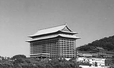 上個世紀50年代,臺北還沒有一家五星級飯店,蔣介石感到接待外賓尤其是外國政要很不方便,于是就想蓋一座“國賓館”。那么,飯店蓋在哪里好呢?宋美齡認為位于基隆河濱、圓山山腰的臺灣飯店就很好。因為傳說這是塊風水寶地,當年日本人就看中這里是所謂的“龍尾穴”,建起了神社。臺灣光復(fù)后,在神社的廢墟上蓋起了臺灣飯店,由本地的旅行社經(jīng)營。雖然臺灣飯店只有36間客房、1間餐廳,建筑老舊,設(shè)備簡陋,但環(huán)境清幽,視野開闊,宋美齡很喜歡在這里接待外賓。地址選好了,那么選擇什么建筑式樣呢?幾經(jīng)考慮,蔣介石最后選擇了中國宮殿式房舍和庭院,意圖憑借其莊重宏偉的外觀、典雅精致的陳設(shè),向外賓宣揚中國的傳統(tǒng)文化。臺灣著名的建筑設(shè)計師楊卓成先生為此繪制了12張風格迥異的設(shè)計圖,蔣介石選了其中一張?梢哉f,圓山飯店從它建成的第一天起,就注定要成為人們關(guān)注的焦點。