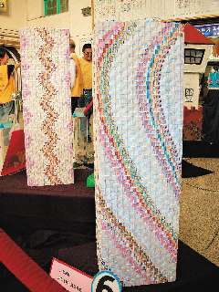 臺(tái)南高商廣告設(shè)計(jì)商、當(dāng)?shù)亟處焺t與學(xué)生共同創(chuàng)作,提供五項(xiàng)作品參展,分為鳳凰花和安平古堡等造型。府城舊冊(cè)店家潘靜竹則以“愛心久久”為題,將發(fā)票箱點(diǎn)綴成美麗少女。