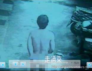 據(jù)臺(tái)灣東森新聞報(bào)道,監(jiān)視錄像帶中左上角這名男子全身光溜溜,從小吃店跑到大街上,左手遮著重要部位,右手往后遮屁股,見到有放學(xué)的學(xué)生經(jīng)過還會(huì)害羞的跑到車子后方躲起來,光天化日之下在大街上上演裸奔戲碼,他不是和朋友玩游戲玩輸被懲罰,而是因?yàn)闆]錢付酒錢。
