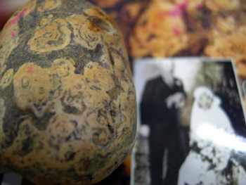 前知名唱片行老板黃清雨搜集奇石異木十余年,他最近整理帶回珍藏的柴山奇石發(fā)現(xiàn),其中一顆小石頭浮現(xiàn)酷似蔣宋美齡的婚紗照。