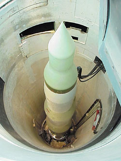 義勇兵洲際彈道導(dǎo)彈,曾是冷戰(zhàn)時(shí)期美國(guó)的重要嚇阻力量。2006年8月,美國(guó)國(guó)防后勤局誤將4具這種導(dǎo)彈的鼻錐引信總成當(dāng)成直升機(jī)蓄電池送至臺(tái)灣。(美聯(lián)社圖)