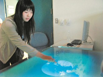 該研究團隊設(shè)計的指觸顯微桌同時具有指觸和顯微兩種功能,透過投影機和攝影機的運用,把桌子變成顯示屏,使用者直接用手指直接觸動操控,不再需要實體的鍵盤或鼠標。