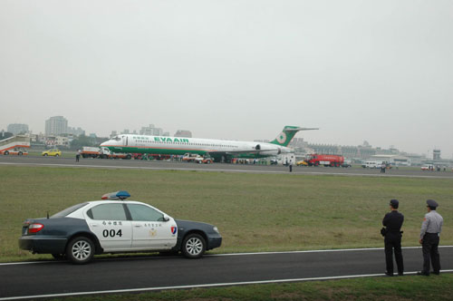 據(jù)“中央社”報(bào)道,這架BR-17913班次MD-90型接駁機(jī)上午八時(shí)四十五分,搭載三十六名乘客從桃園飛往高雄,原定上午九時(shí)二十分抵達(dá)高雄,機(jī)長(zhǎng)起飛后發(fā)現(xiàn)右翼輪胎有響聲,懷疑破胎,于是緊急通知高雄機(jī)場(chǎng)塔臺(tái),展開迫降前置作業(yè)。