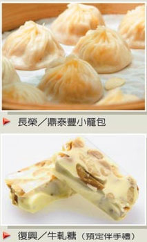 在機(jī)上餐點(diǎn)方面,華航不惜砸下重金,推出仿臺北“故宮”典藏品的創(chuàng)意菜,在赴臺包機(jī)商務(wù)艙上推出“故宮晶華國寶宴”佳肴。經(jīng)濟(jì)艙餐點(diǎn),華航以臺灣地方特色為主,菜譜包括豬腳飯、排骨飯、爌肉飯、竹塹米粉、三杯雞飯、筒仔米糕等;華信菜譜包括香烤鰻魚香菇糯米飯、懷舊排骨飯,搭配前菜鮮玉冷筍、臺灣特產(chǎn)烏魚子,并以臺中太陽餅及當(dāng)令新鮮水果招待旅客。