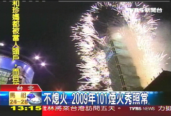 對此,101大樓出面表示,2009年的跨年煙火秀還是會繼續(xù)。101大樓公關(guān)協(xié)理劉家豪說:“會維持在往年的水平,不會縮水,因為今年比較不景氣,尤其在剛剛發(fā)生這1、2個月,所以整個有比較緩慢的跡象。”