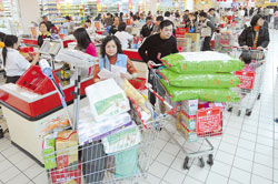 量販業(yè)者形容昨天是“最像假日的上班日”,尤其是夜間推出九折促銷(xiāo),吸引不少民眾犧牲睡覺(jué)時(shí)間來(lái)采買(mǎi),估計(jì)有二成來(lái)客選在凌晨消費(fèi)。家樂(lè)福夜間購(gòu)物滿2000元,再送200元折價(jià)券,各店從凌晨起收銀線即大排長(zhǎng)龍,汐止店甚至需排隊(duì)一個(gè)小時(shí)才能順利結(jié)帳。