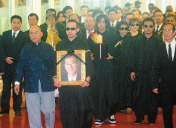 另據(jù)TVBS報(bào)道,為防滋事,警方在靈堂周圍部署三百名警力,還在各路口荷槍實(shí)彈進(jìn)行攔檢。警方嚴(yán)格執(zhí)行與幫會(huì)協(xié)商好的三不政策,即參加者不穿堂口制服、不掛旗幟、不準(zhǔn)出現(xiàn)未成年人。