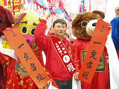 抽簽會場外藍(lán)綠陣營積極動員造勢,現(xiàn)場“凍蒜!(注:當(dāng)選)”聲此起彼落,場面熱烈,在警方以人墻區(qū)隔藍(lán)綠陣營下,過程平和。