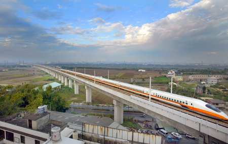歷經(jīng)一連串風波后,臺灣高鐵正式通車營運,成為臺灣交通史新的里程碑,目前旅客已突破1500萬人次。圖為高鐵列車通過彰化縣進入臺中縣前的畫面。記者于志旭/攝影