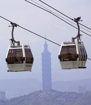 雖有打雷閃電停駛、當(dāng)機(jī),以及悶熱的不良現(xiàn)象,大家還是無(wú)法抵擋高空美景誘惑,臺(tái)北貓空纜車(chē)7月?tīng)I(yíng)運(yùn)以來(lái)已有200萬(wàn)人次搭乘。圖為貓纜遠(yuǎn)眺臺(tái)北101。記者周永受/攝影
