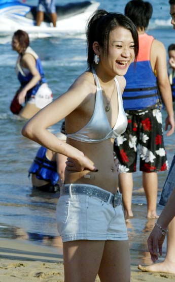 中新網4月7日電 臺灣屏東墾丁景區(qū)涌入春浪人潮,南灣的沙灘到處可見穿著清涼的比基尼辣妹玩沙戲水,洋溢著春天氣息。 (臺灣《聯(lián)合報》圖;劉學圣、董俊志/攝影)