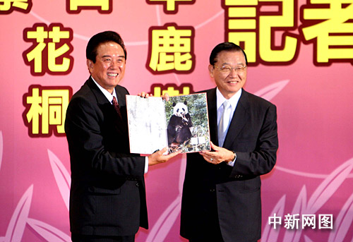中新網(wǎng)臺(tái)北11月6日電 大陸海協(xié)會(huì)會(huì)長(zhǎng)陳云林與臺(tái)灣海基會(huì)董事長(zhǎng)江丙坤今日上午在臺(tái)北出席兩岸互贈(zèng)珍稀動(dòng)植物記者會(huì),大陸贈(zèng)送的除了大熊貓“團(tuán)團(tuán)”、“圓圓”外,還有珙桐樹,臺(tái)灣方面回贈(zèng)的是長(zhǎng)鬃山羊和梅花鹿。