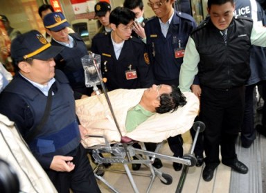組圖:陳水扁躺在擔(dān)架上打點滴