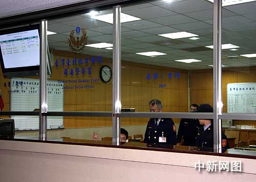 臺(tái)北地方法院司法警察室燈火通明。中新社記者 陳立宇/攝