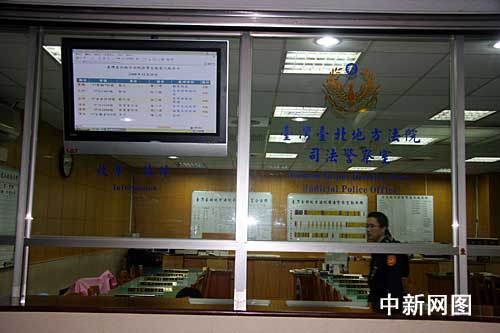 12月29日下午2時,臺北地方法院召開前臺灣地區(qū)領(lǐng)導(dǎo)人陳水扁羈押庭,經(jīng)過長達(dá)12多小時的庭訊、評議后,合議庭審判長蔡守訓(xùn)30日2時25分裁定將陳水扁羈押,但不禁見。陳水扁被收押的公告就是在這里發(fā)布。 (中新社記者 陳立宇/攝)