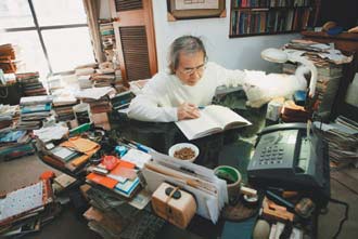 南方朔家里像座小型圖書館,書房里一排排頂天立地的書架,像學問家的神圣祭壇,不可造次;但家犬“狗狗”除外。它舒服地把窩放在書林間,同享安穩(wěn)。狗窩與書房并不互斥。